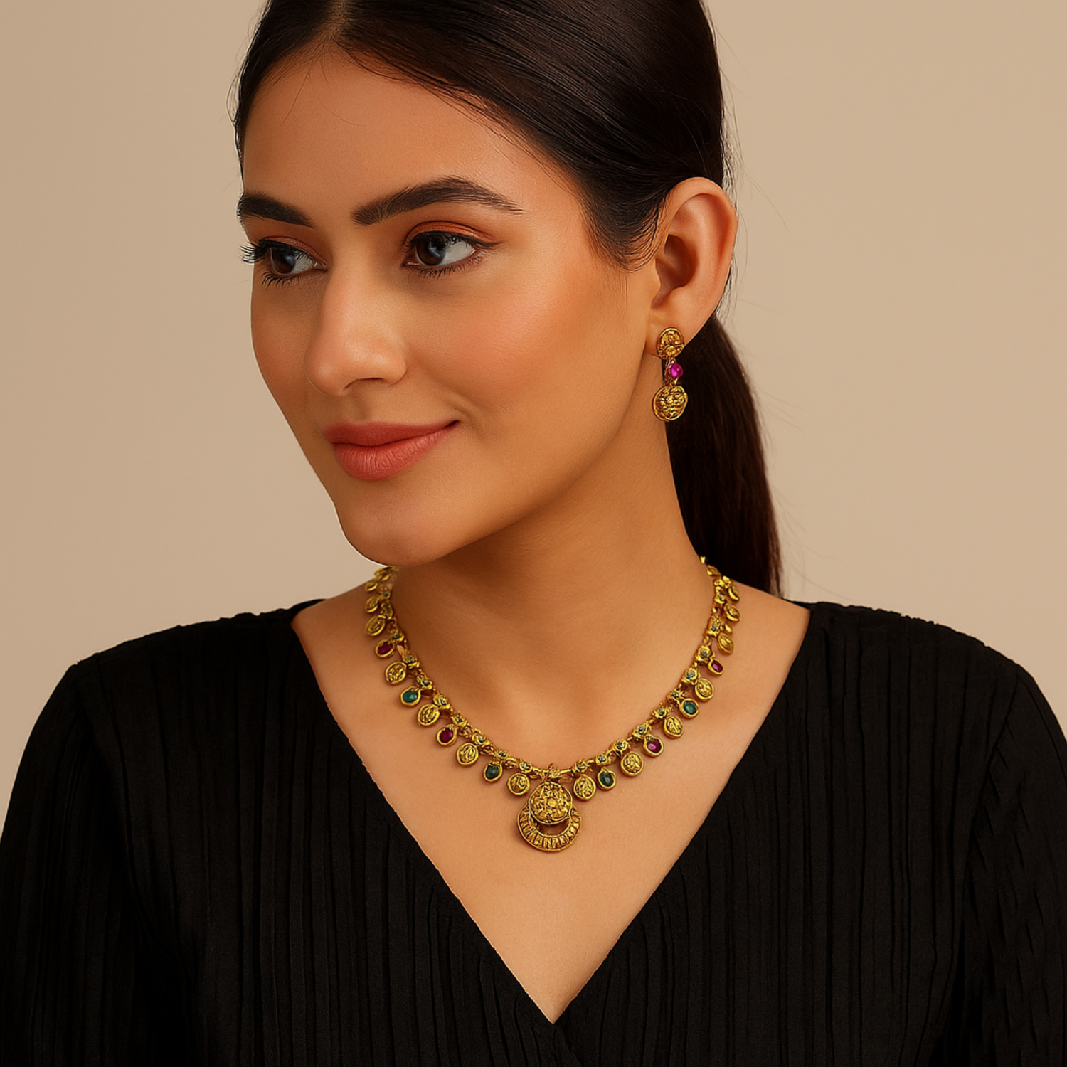 SF1002 - Ganesh Coin Necklace (Kaashumala) with Earrings