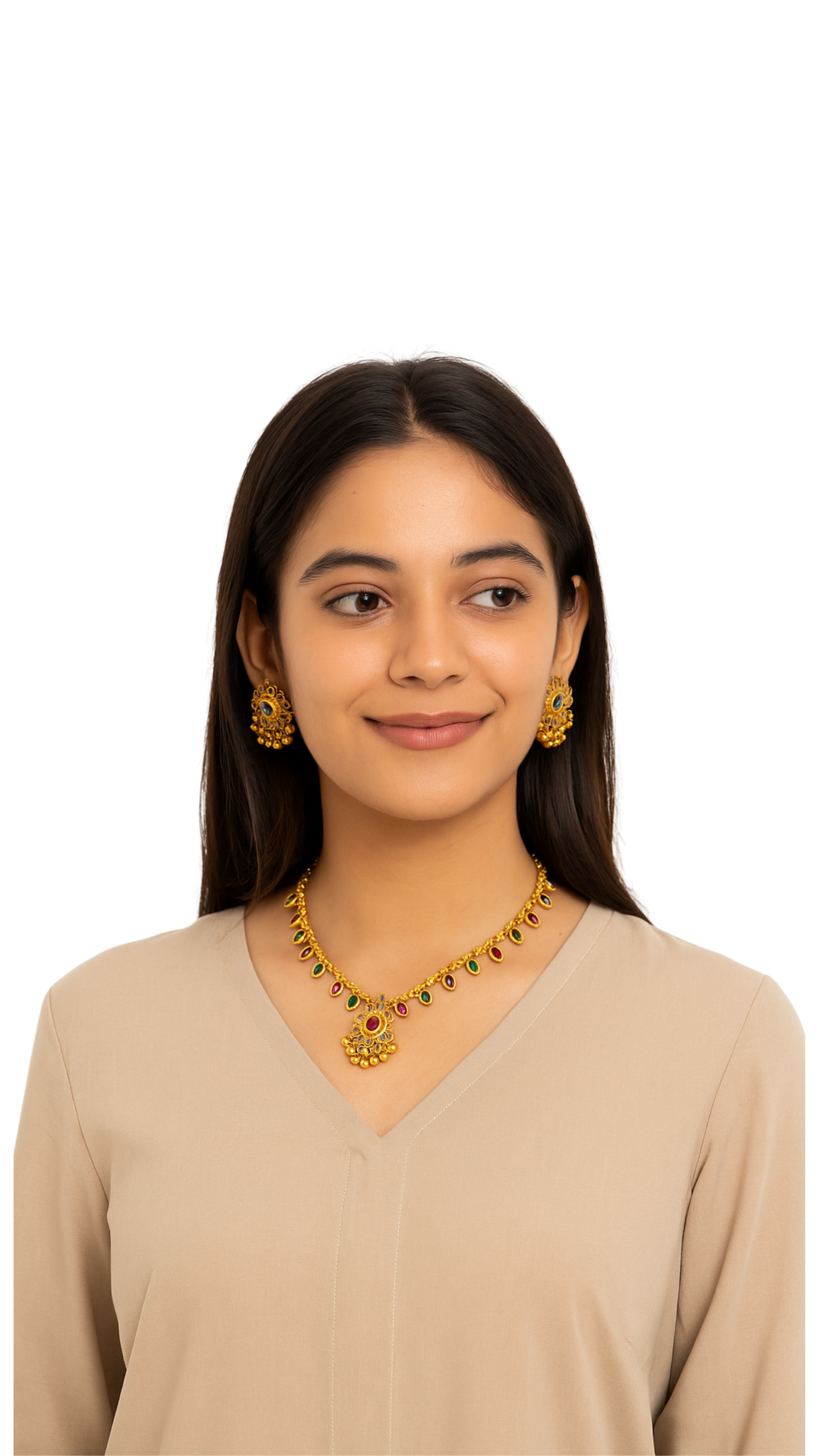 SF1008 - Lakshmi Mini Choker with Red & Green Stones