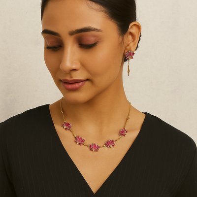 SF1011 - Dark Pink RainDrop Necklace with Earrings