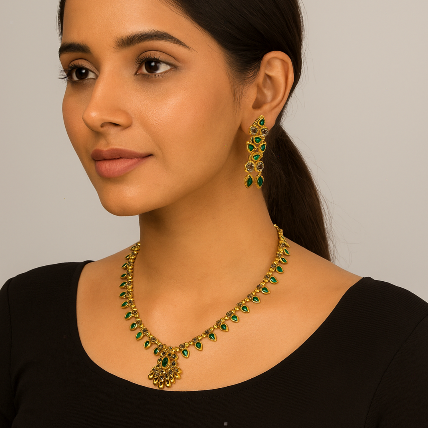SF1009 - Leaf Shaped Green & Red Necklace with Earrings